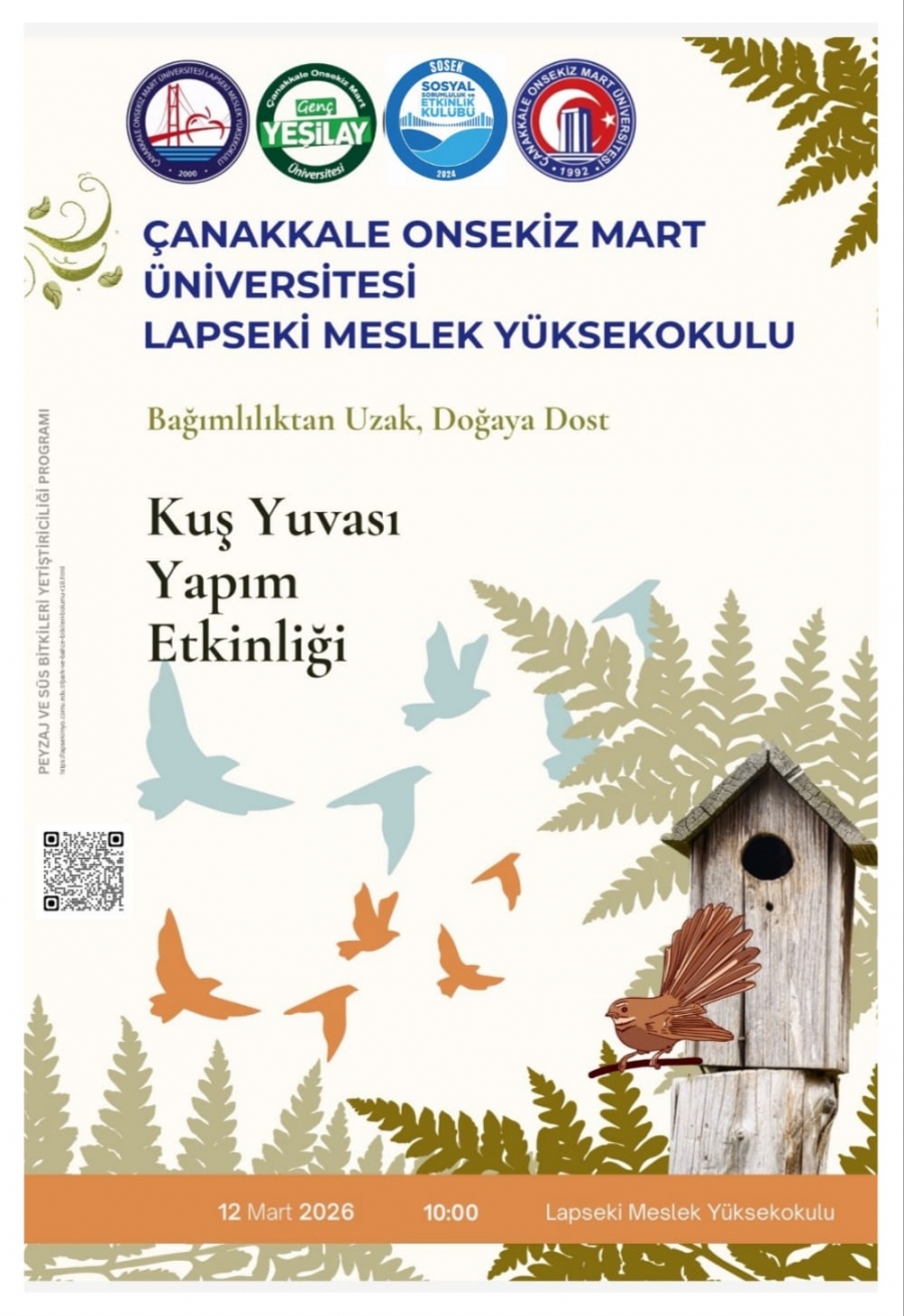 Okulumuz Sosyal Sorumluluk ve Etkinlik Kulübü, Peyzaj ve Süs Bitkileri Programı ve Genç Yeşilay Topluluğu iş birliğiyle düzenlenen “Kuş Yuvası Yapım Etkinliği”ne tüm öğrencilerimizi davet ediyoruz.