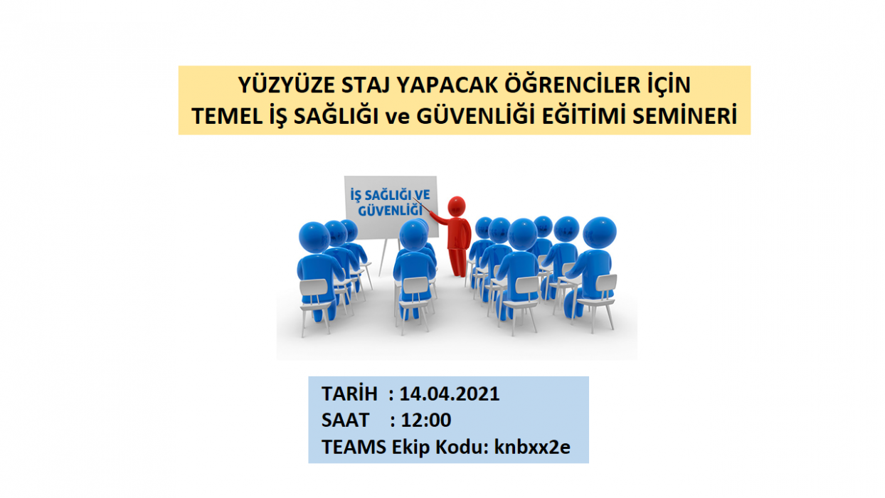 TEMEL İŞ SAĞLIĞI ve GÜVENLİĞİ EĞİTİMİ düzenlenecektir. Uygulamalı staj yapacak tüm öğrencilerin katılması zorunludur.
