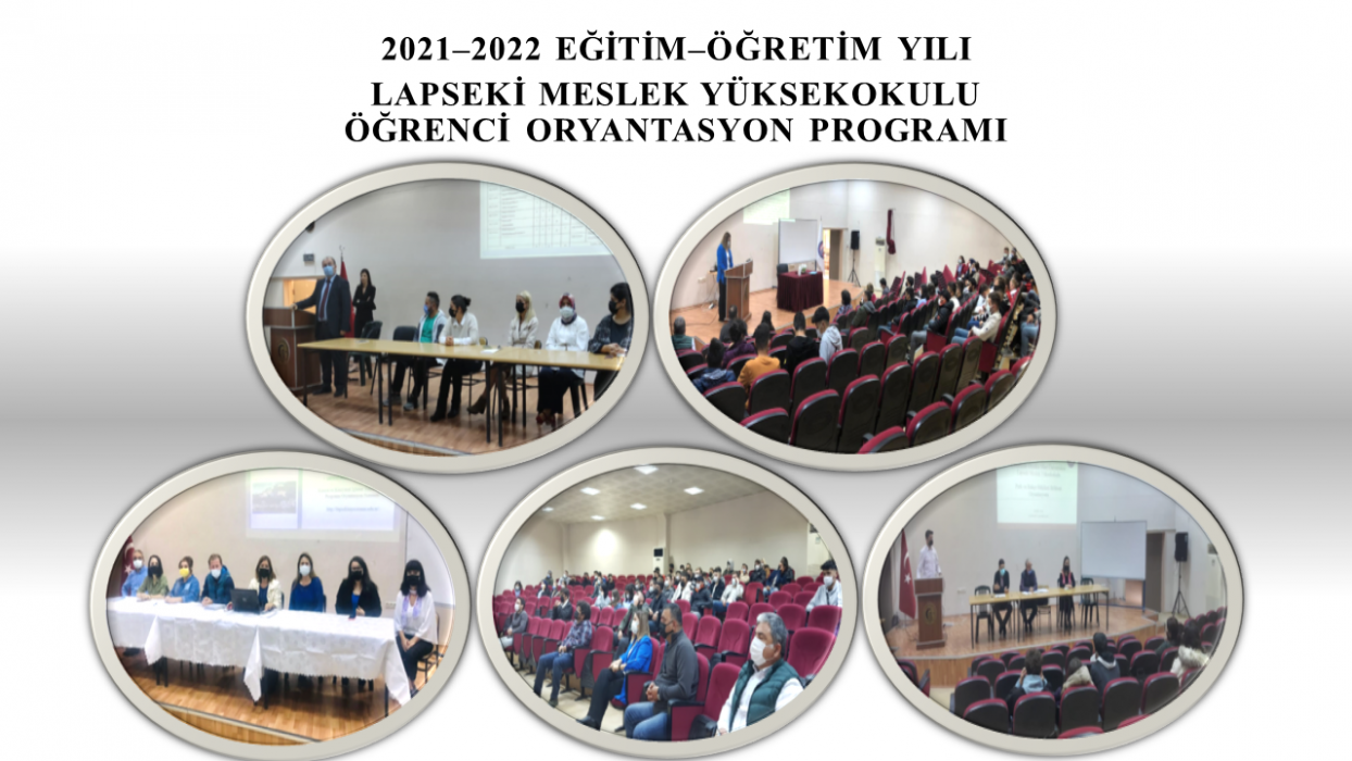 2021-2022 Eğitim-Öğretim Yılı Lapseki Meslek Yüksekokulu öğrencileri için oryantasyon eğitimi gerçekleştirildi. Lapseki Meslek Yüksekokulunda bulunan Bitkisel ve Hayvansal Üretim Bölümü Bitki Koruma ile Fidan Yetiştiriciliği Programı 13.10.2021 tarihinde; Muhasebe ve Vergi Uygulamaları Bölümü 14.10.2021 tarihinde; Park ve Bahçe Bitkileri Bölümü Peyzaj ve Süs Bitkileri Yetiştiriciliği Programı 18.10.2021 tarihinde; Finans-Bankacılık ve Sigortacılık Bölümü Maliye Programı Oryantasyon Eğitimi 19.10.2021 tarihinde ve Finans-Bankacılık ve Sigortacılık Bölümü Bankacılık ve Sigortacılık Programı 20.10.2021 tarihinde öğrenci oryantasyon ve tanışma programını gerçekleştirmiştir. Oryantasyon eğitiminde, Üniversitemize yeni gelen öğrencilerimize Çanakkale Onsekiz Mart Üniversitesi ve Lapseki Meslek Yüksekokulu hakkında bilgi verilmiştir. Program hakkında bilgilendirme yapılmış ve öğrencilerimiz bölüm öğretim elemanları ile tanışmıştır. Ayrıca öğrencilerimize, eğitim-öğretim sistemi, akademik takvim, derslere devam, ders programı, sınav esasları, başarı notu, yüz yüze ve uzaktan eğitim sistemi, öğrenci disiplin işlemleri, staj ve mezuniyet koşulları gibi temel konular hakkında sunum yapılmıştır.